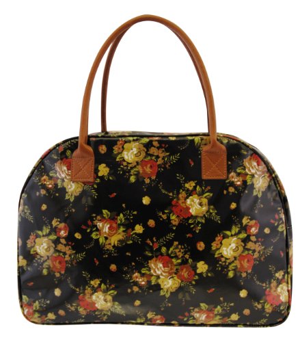 Beautiful 'Oxford' Black Floral Print Overnight Bag. (Black)