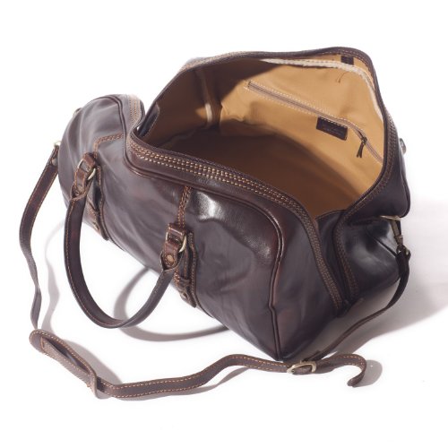 - Beautifully crafted leather holdall. This is a handmade Italian leather travel bag that will give you many years of great service. Solid construction. All the stress points are both riveted and stitched. The bag has a large full zip opening which is a really useful feature as it makes packing and unpacking so much easier. This is the small size. There is a medium and large size.