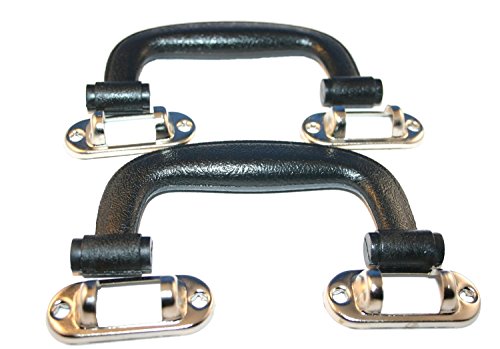 Description : This is a pair of Carrying Handles in Black Moulded plastic with a textured finish. Size 152 mm overall x 64 mm high. Hole size 4mm diameter. Fixings are not included. Suitable for briefcases or other light luggae items.