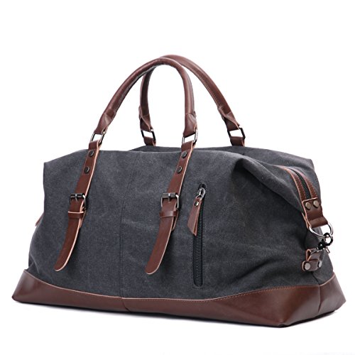 Eshow Men's CanvasNylon Retro Weekend Overnight Outdoor Hiking Climbing Camping Sports Gym Travel Duffel Bag (Black04)