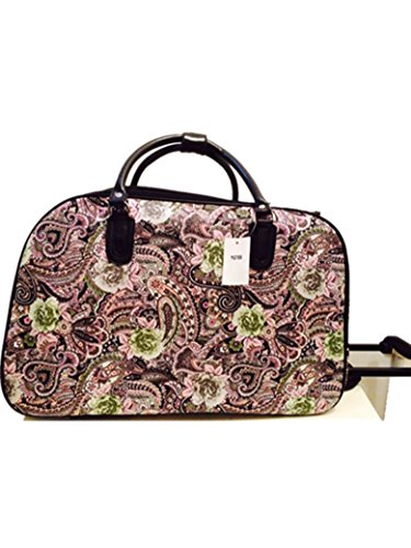Designer Inspired Paisely Print Cabin Trolley Overnight Bag (Black and Grey)