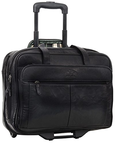 Description : Practical Travel Briefcase on wheelsDimensions:(WxHxD): 16.5 x 13.8 x 8.7 in (42 x 35 x 22 cm) Leather: Buffalo hideColour: BlackFeaturesTwo main internal compartments and three smaller internal pocketsAdditional pocket on the front of the bag, Dimensions: 15.7 x 9.8 x 2 in (40 x 25 x 5 cm)Sturdy zip closureSingle carry handle on the top of the bag, Dimensions: 18.5 x 1.2 in (47 x 3 cm)Retractable handle with storage under a zip flapProduced using genuine leather from traditional tanneriesChemic...