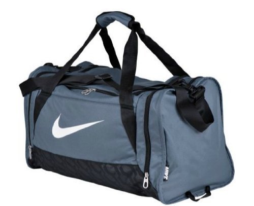 Nike Brasilia Small Holdall - Grey with 3 external pockets and 1 internal pocket, and Detachable, padded shoulder strap, size (H30.48, W27.94, D28cm), Made from: polyester.