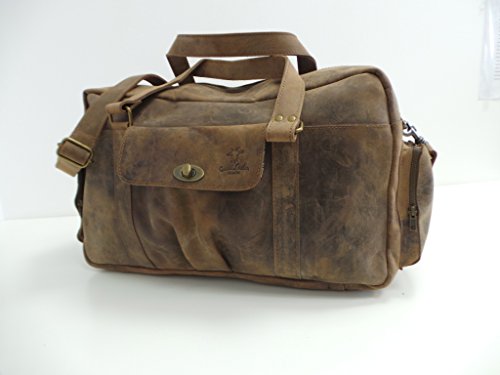 Description : Leather travel bag from brown leather.Dimensions:(WxHxD) 22 x 11.2 x 7 in (56 x 28.5 x 18 cm) Leather: Buffalo HideColour: BrownFeaturesOne main internal compartmentTwo external front pockets: Dimensions 7.6 x 7.4 x 1.9 in (19.50 x 19 x 5 cm)Two external side pockets: Dimensions 5.5 x 6.2 x 1.5 in (14 x 16 x 4 cm)Zip closureAdjustable strap: 55 x 0.9 in (140 x 2.5cm)Chemically dyed using Chrome saltCare Tip: use a leather Impregnation spray Due to the nature of the material and the way in which ...