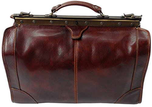 Genuine Italian Leather Top Frame Gladstone Hand Luggage Overnight Cabin Case (XL Hand Luggage, Brown)