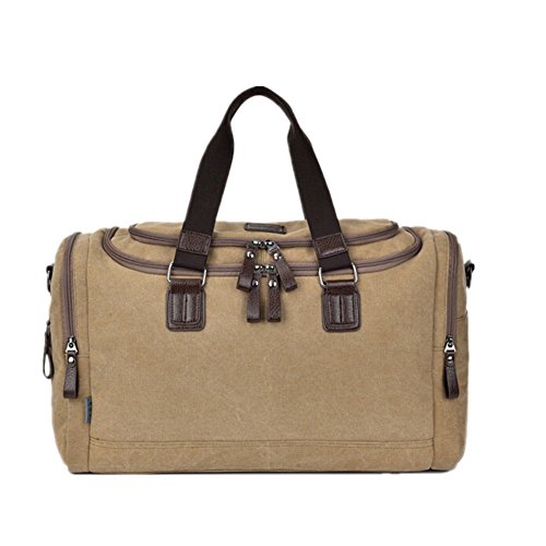 Toupons Canvas Travel Weekend Bag Holdall Duffle Overnight Bag (Khaki)