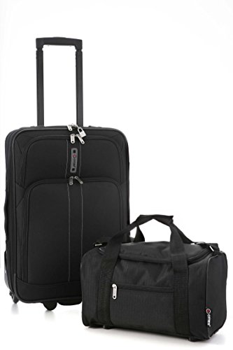 5 Cities Flight Pack Set - 21"/55cm Cabin Hand Luggage Travel Suitcase & Ryanair Second Bag