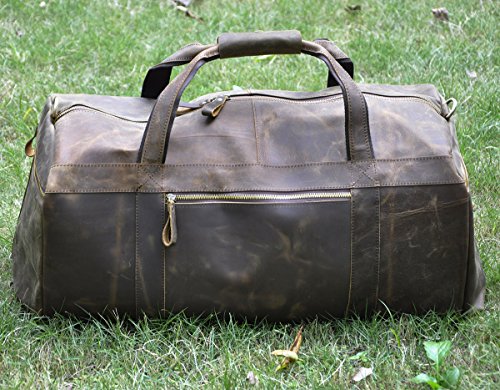 - This fantastic, in-style genuine leather bag is perfect to use as an travel bag, festival bag, weekend bag or as gym bag