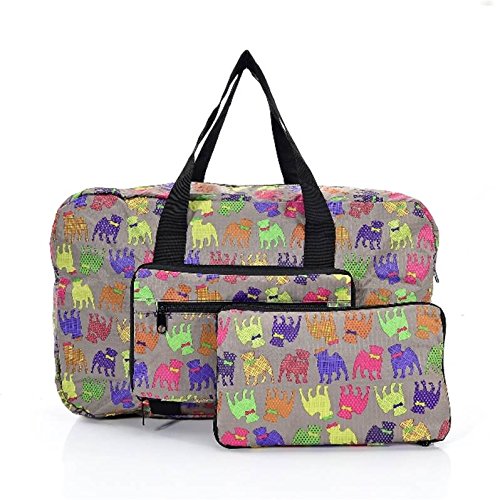 Description : These expandable holdalls are foldable, waterproof, lightweight and durable. Available in a choice of designs, this listing is for a multi-coloured pug design on a grey background.
