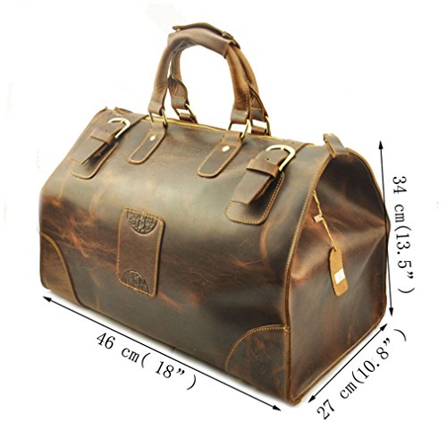 Le'aokuu Mens Genuine Leather Carry on Travel Luggage Tote Duffle Gym Bags (Brown With Shoulder Strap)