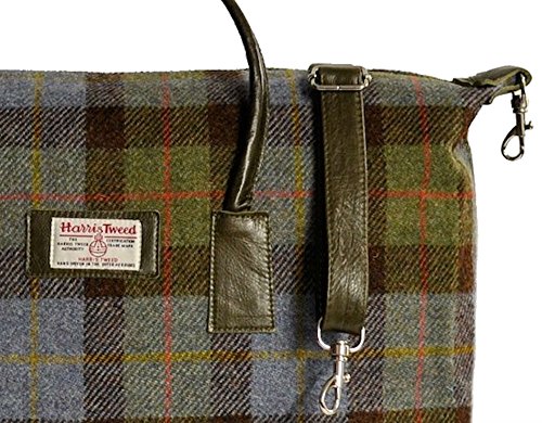 - Genuine Blue Tartan Harris Tweed and Real Leather Holdall / Overnight Bag