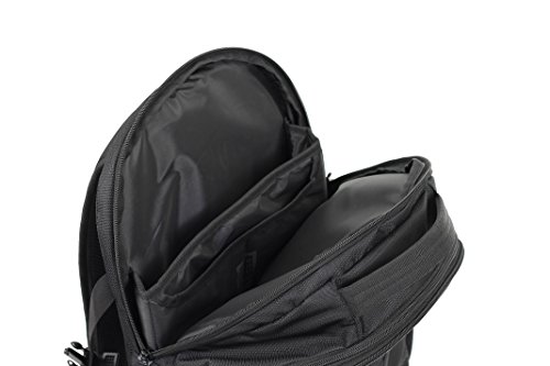 Description : PRODUCT FEATURES: Ultra strong lightweight fabricSmooth running zips on all sectionsPadded adjustable shoulder straps with jersey nylon phone pouch and sunglasses holderRaised foam padded backing provides comfort and ventilationTop carry handle in webbing with EVA reinforcementLarge main compartment with lockable zips fits A4 documents or ring bindersSeparate easy access laptop section with padded protection sleeve - dimensions L31 x W27 cm but can take laptop up to 40cm longPadded tablet sleave...