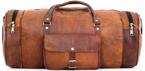 Description : Beautiful and Practical Travel Bag. Dimensions: (Width x Diameter) 22 x 10 in (55 x 26 cm). Leather: Goatskin. Colour: Natural Brown.One large internal compartment One exterior pocket with buckle fastening Two small zippered pockets Fastener: Sturdy double zipAdjustable shoulder strap: (LxW) 57 x 1.4 in (145 x 3.5 cm)Two carry handles. The bag features a distinctive leather smell which subsides with regular use. Each bag has its own unique and distinct leather wash. This is due to the nature of ...